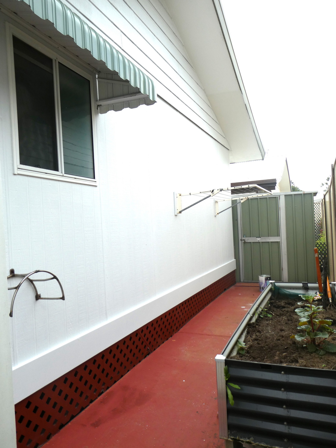 This two-bedroom home has been repainted in modern cool colours to suit any decor.